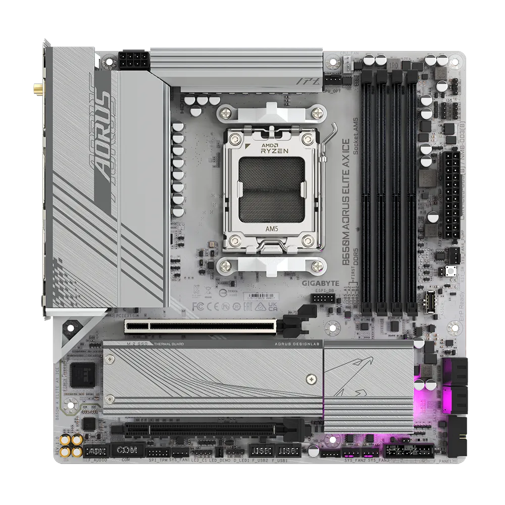 Piegāde visā Vācijā un iespēja saņemt pasūtījumu izsniegšanas punktā. Ērti norēķinu veidi. Iespēja apmaksat tieši interneta veikalā, ar karti vai skaidrā naudā preces saņemšanas punkta. Detalizēts preču apraksts un salīdzināšanas iespēja. Populārākie zīmoli no pasaules ražotājiem. 169,50 € Preces ID: 1215 Pamatplate GIGABYTE B650M A ELITE AX ICE PamataRažotājs ........................................................................................................................................................................................................ Ražotāja kods ........................................................................................................................................................................................................ B650M A ELITE AX ICE Socket ........................................................................................................................................................................................................ AM5 Mikroshēmu kopa (Chipset) ........................................................................................................................................................................................................ AMD B650 AtmiņaAtmiņas veids ........................................................................................................................................................................................................ DDR5 Atmiņas slotu skaits ........................................................................................................................................................................................................ 4 Diska kontrolieriSATA kontrolieris ........................................................................................................................................................................................................ 4 x SATA-III (6 Gb/s) RAID atbalsts ........................................................................................................................................................................................................ 0, 1, 10 Paplašināšanas slotiPaplašināšanas sloti ........................................................................................................................................................................................................ PCI-E 4.0 x16, PCI-E M.2 M.2. slotu veids ........................................................................................................................................................................................................ CPU: