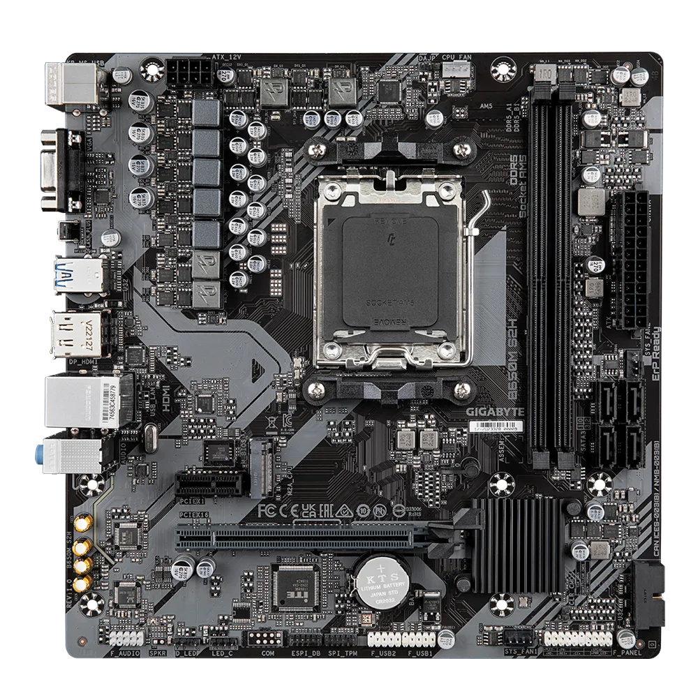 Piegāde visā Vācijā un iespēja saņemt pasūtījumu izsniegšanas punktā. Ērti norēķinu veidi. Iespēja apmaksat tieši interneta veikalā, ar karti vai skaidrā naudā preces saņemšanas punkta. Detalizēts preču apraksts un salīdzināšanas iespēja. Populārākie zīmoli no pasaules ražotājiem. 92,80 € Preces ID: 1219 Pamatplate GIGABYTE B650 B650M S2H Brown (B650M S2H 1.0) PamataRažotājs ........................................................................................................................................................................................................ Ražotāja kods ........................................................................................................................................................................................................ B650M S2H 1.0 Socket ........................................................................................................................................................................................................ AM5 Mikroshēmu kopa (Chipset) ........................................................................................................................................................................................................ AMD B650 AtmiņaAtmiņas veids ........................................................................................................................................................................................................ DDR5 Atmiņas slotu skaits ........................................................................................................................................................................................................ 2 Diska kontrolieriSATA kontrolieris ........................................................................................................................................................................................................ 4 x SATA-III (6 Gb/s) RAID atbalsts ........................................................................................................................................................................................................ 0, 1, 10 Paplašināšanas slotiPaplašināšanas sloti ........................................................................................................................................................................................................ PCI-E 4.0 x16, PCIe 3.0 x1, PCI-E M.2 M.2. slotu veids ........................................................................................................................................................................................................ 1 x M.2 connector (M2A_CPU), integrated in the CPU, supporting Socket 3, M key, type 2580 SSDs: