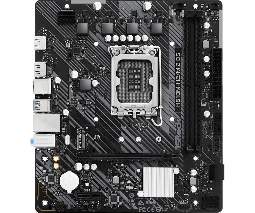 Piegāde visā Vācijā un iespēja saņemt pasūtījumu izsniegšanas punktā. Ērti norēķinu veidi. Iespēja apmaksat tieši interneta veikalā, ar karti vai skaidrā naudā preces saņemšanas punkta. Detalizēts preču apraksts un salīdzināšanas iespēja. Populārākie zīmoli no pasaules ražotājiem. 57,70 € Preces ID: 1283 Pamatplate ASROCK H610 H610M-H2/M.2 D5 Black (90-MXBML0-A0UAYZ) PamataRažotājs ........................................................................................................................................................................................................ Ražotāja kods ........................................................................................................................................................................................................ 90-MXBML0-A0UAYZ Socket ........................................................................................................................................................................................................ LGA 1700 Mikroshēmu kopa (Chipset) ........................................................................................................................................................................................................ Intel H610 AtmiņaAtmiņas veids ........................................................................................................................................................................................................ DDR5 Atmiņas slotu skaits ........................................................................................................................................................................................................ 2 Diska kontrolieriSATA kontrolieris ........................................................................................................................................................................................................ 4 x SATA-III (6 Gb/s) Paplašināšanas slotiPaplašināšanas sloti ........................................................................................................................................................................................................ PCI-E 4.0 x16, PCIe 3.0 x1, PCI-E M.2 Audio/VideoSkaņa ........................................................................................................................................................................................................ 8 kanāli (7.1) Audio kontrolieris ........................................................................................................................................................................................................ Realtek ALC897 TīklsTīkla saskarne ........................................................................................................................................................................................................ Gigabit Ethernet (10/100/1000 Mb/c) Tīkla kontrolieris ........................................................................................................................................................................................................ Realtek RTL8111H SaskarnesLigzdas aizmugurējā panelī ........................................................................................................................................................................................................ PS/2, 4 x USB 2.0, 2 x USB 3.2 Gen1, 2 x HDMI, RJ-45 PapilduLigzdas korpusa ventilatoru pieslēgšanai ........................................................................................................................................................................................................ 4-pin ATX 12 V barošanas ligzda ........................................................................................................................................................................................................ 8-pin Iekšējās USB pieslēgvietas platē ........................................................................................................................................................................................................ USB 2.0, USB 3.2 Gen1 Formfaktors ........................................................................................................................................................................................................ mATX Noformējumā izmantotās krāsas ........................................................................................................................................................................................................ melns PapildusGarantija ........................................................................................................................................................................................................ 12/24 men. Ražotāja mājās lapa ........................................................................................................................................................................................................ |