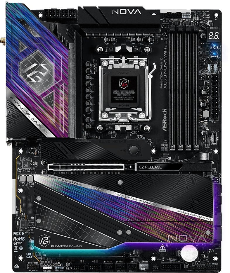 Piegāde visā Vācijā un iespēja saņemt pasūtījumu izsniegšanas punktā. Ērti norēķinu veidi. Iespēja apmaksat tieši interneta veikalā, ar karti vai skaidrā naudā preces saņemšanas punkta. Detalizēts preču apraksts un salīdzināšanas iespēja. Populārākie zīmoli no pasaules ražotājiem. 284,00 € Preces ID: 34369 Pamatplate ASRock X870 Nova WiFi PamataRažotājs ........................................................................................................................................................................................................ Ražotāja kods ........................................................................................................................................................................................................ X870 Nova WiFi Socket ........................................................................................................................................................................................................ AM5 Mikroshēmu kopa (Chipset) ........................................................................................................................................................................................................ AMD X870 AtmiņaAtmiņas veids ........................................................................................................................................................................................................ DDR5 Atmiņas slotu skaits ........................................................................................................................................................................................................ 4 Diska kontrolieriSATA kontrolieris ........................................................................................................................................................................................................ 6 x SATA-III (6 Gb/s) RAID atbalsts ........................................................................................................................................................................................................ 0, 1, 10 Paplašināšanas slotiPaplašināšanas sloti ........................................................................................................................................................................................................ PCI-E 5.0 x16, PCI-E 4.0 x16, PCI-E M.2 Audio/VideoSkaņa ........................................................................................................................................................................................................ 8 kanāli (7.1) Audio kontrolieris ........................................................................................................................................................................................................ Realtek ALC4082 TīklsTīkla saskarne ........................................................................................................................................................................................................ 5 Gigabit Ethernet (100/1000/2500/5000 Mb/c), Wi-Fi, Bluetooth SaskarnesLigzdas aizmugurējā panelī ........................................................................................................................................................................................................ 4 x USB 2.0, 3 x USB 3.2 Gen1, 2 x USB 3.2 Gen2, 2 x USB 4 Type-C, HDMI, RJ-45, S/PDIF (optiskais) PapilduLigzdas korpusa ventilatoru pieslēgšanai ........................................................................................................................................................................................................ 2 x 4-pin ATX 12 V barošanas ligzda ........................................................................................................................................................................................................ 2 x 8-pin Iekšējās USB pieslēgvietas platē ........................................................................................................................................................................................................ 2 x USB 2.0, 2 x USB 3.2 Gen1, USB 3.2 Gen2x2 Type-C ARGB 5V savienotāji uz plates ........................................................................................................................................................................................................ 3 x 3-pin RGB 12V savienotāji uz plates ........................................................................................................................................................................................................ 4-pin Apgaismojums ........................................................................................................................................................................................................ jā Formfaktors ........................................................................................................................................................................................................ ATX Noformējumā izmantotās krāsas ........................................................................................................................................................................................................ melns, violets PapildusGarantija ........................................................................................................................................................................................................ 12/24 men. Ražotāja mājās lapa ......................................................................................................................................................................................................