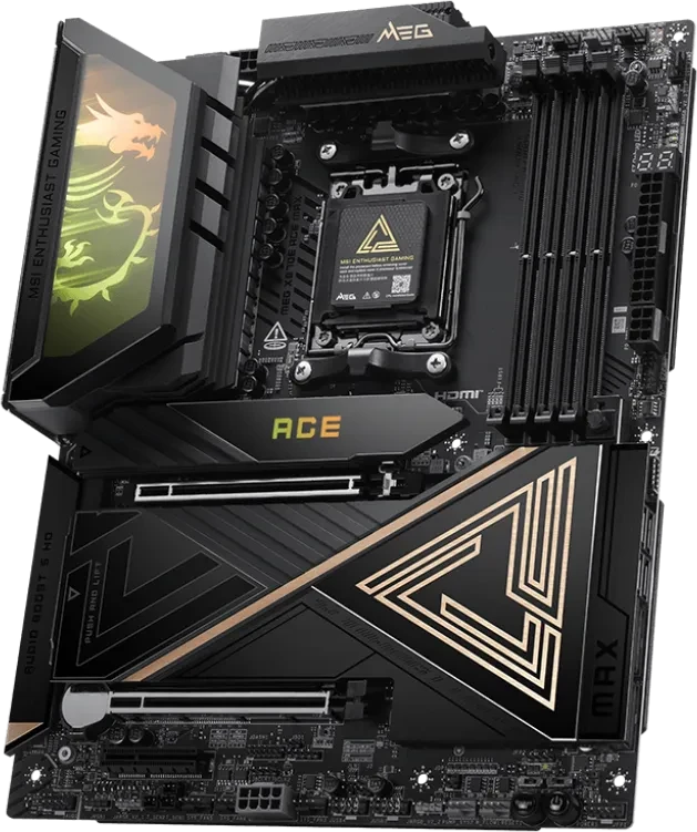 • Supports up to PCIe 4.0 x8/ x0 (For Ryzen™ 8700/ 8600/ 8400 Series processors)