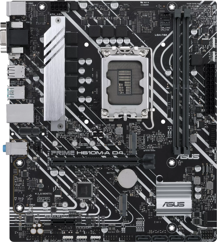 Piegāde visā Vācijā un iespēja saņemt pasūtījumu izsniegšanas punktā. Ērti norēķinu veidi. Iespēja apmaksat tieši interneta veikalā, ar karti vai skaidrā naudā preces saņemšanas punkta. Detalizēts preču apraksts un salīdzināšanas iespēja. Populārākie zīmoli no pasaules ražotājiem. 89,00 € Preces ID: 423460 Pamatplate ASUS PRIME H610M-A D4-CSM (PRIME H610M-A D4-CSM) PamataRažotājs ........................................................................................................................................................................................................ Ražotāja kods ........................................................................................................................................................................................................ PRIME H610M-A D4-CSM Socket ........................................................................................................................................................................................................ LGA 1700 Mikroshēmu kopa (Chipset) ........................................................................................................................................................................................................ Intel H610 AtmiņaAtmiņas veids ........................................................................................................................................................................................................ DDR4 Atmiņas slotu skaits ........................................................................................................................................................................................................ 2 Diska kontrolieriSATA kontrolieris ........................................................................................................................................................................................................ 4 x SATA-III (6 Gb/s) Paplašināšanas slotiPaplašināšanas sloti ........................................................................................................................................................................................................ PCI-E 4.0 x16, PCI-E x1, 3 x PCI-E M.2 M.2. slotu veids ........................................................................................................................................................................................................ - Key M, 2242/2260/2280 (PCIe 3.0 x4); - Key M, 2242/2260/2280 (PCIe 3.0 x2); - Key E for Wi-Fi module. Audio/VideoIntegrētais video ........................................................................................................................................................................................................ jā (ja tiek izmantots procesors ar video kodolu) Skaņa ........................................................................................................................................................................................................ 8 kanāli (7.1) Audio kontrolieris ........................................................................................................................................................................................................ Realtek TīklsTīkla saskarne ........................................................................................................................................................................................................ Gigabit Ethernet (10/100/1000 Mb/c) Tīkla kontrolieris ........................................................................................................................................................................................................ Intel SaskarnesLigzdas aizmugurējā panelī ........................................................................................................................................................................................................ 2 x PS/2, 4 x USB 2.0, 2 x USB 3.2 Gen2, VGA, HDMI, DisplayPort, RJ-45 Barošanas apakšsistēmas radiators (mosfeti) ........................................................................................................................................................................................................ jā PapilduLigzdas korpusa ventilatoru pieslēgšanai ........................................................................................................................................................................................................ 2 x 4-pin ATX 12 V barošanas ligzda ........................................................................................................................................................................................................ 8-pin Iekšējās USB pieslēgvietas platē ........................................................................................................................................................................................................ 2 x USB 2.0, USB 3.2 Gen1 ARGB 5V savienotāji uz plates ........................................................................................................................................................................................................ 3 x 3-pin RGB 12V savienotāji uz plates ........................................................................................................................................................................................................ 2 x 4-pin Formfaktors ........................................................................................................................................................................................................ mATX Piegādes veids ...........................................................................................................