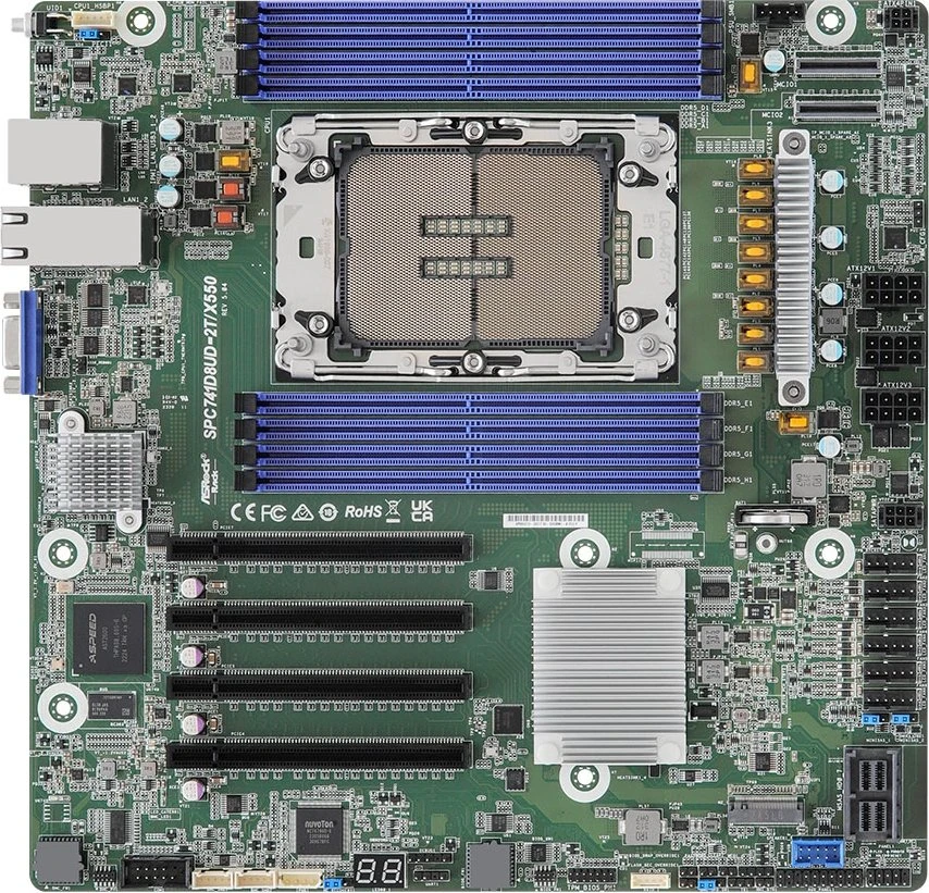 Piegāde visā Vācijā un iespēja saņemt pasūtījumu izsniegšanas punktā. Ērti norēķinu veidi. Iespēja apmaksat tieši interneta veikalā, ar karti vai skaidrā naudā preces saņemšanas punkta. Detalizēts preču apraksts un salīdzināšanas iespēja. Populārākie zīmoli no pasaules ražotājiem. 870,30 € Preces ID: 44820 Pamatplate ASRock SPC741D8UD-2T/X550 PamataRažotājs ........................................................................................................................................................................................................ Ražotāja kods ........................................................................................................................................................................................................ SPC741D8UD-2T/X550 Socket ........................................................................................................................................................................................................ LGA 4677 Mikroshēmu kopa (Chipset) ........................................................................................................................................................................................................ Intel C741 AtmiņaAtmiņas veids ........................................................................................................................................................................................................ DDR5 Atmiņas slotu skaits ........................................................................................................................................................................................................ 8 Diska kontrolieriSATA kontrolieris ........................................................................................................................................................................................................ SATA-III (6 Gb/s) RAID atbalsts ........................................................................................................................................................................................................ 0, 1, 5, 10 Paplašināšanas slotiPaplašināšanas sloti ........................................................................................................................................................................................................ 4 x PCI-E 5.0 x16, 2 x PCI-E 5.0 x8, PCI-E M.2 Audio/VideoIntegrētais video ........................................................................................................................................................................................................ jā Grafiskā mikroshēmas kopa ........................................................................................................................................................................................................ Aspeed AST2600 TīklsTīkla saskarne ........................................................................................................................................................................................................ 10 Gigabit Ethernet (10000 Mb/c) Tīkla kontrolieris ........................................................................................................................................................................................................ Intel X550-AT2 SaskarnesLigzdas aizmugurējā panelī ........................................................................................................................................................................................................ 2 x USB 3.0, VGA, 3 x RJ-45 PapilduLigzdas korpusa ventilatoru pieslēgšanai ........................................................................................................................................................................................................ 4-pin ATX 12 V barošanas ligzda ........................................................................................................................................................................................................ 3 x 8-pin, 4-pin, 6-pin Iekšējās USB pieslēgvietas platē ........................................................................................................................................................................................................ USB 2.0 Papildu informācija ........................................................................................................................................................................................................ 2x MCIO SFF-TA-1016 8i (PCIe 5.0 x8), 2x Mini SAS HD SFF-8643 (SATA), 8x SATA 6Gb/s (via Mini SAS HD SFF-8643)