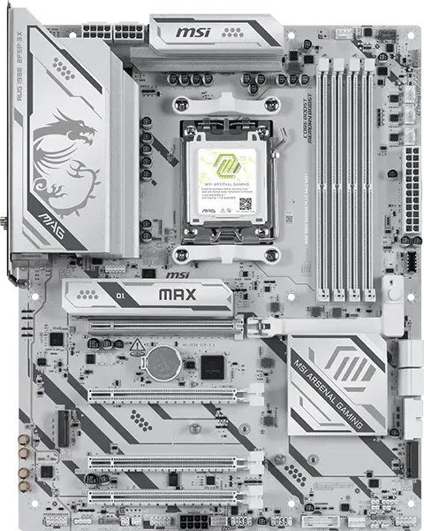 Piegāde visā Vācijā un iespēja saņemt pasūtījumu izsniegšanas punktā. Ērti norēķinu veidi. Iespēja apmaksat tieši interneta veikalā, ar karti vai skaidrā naudā preces saņemšanas punkta. Detalizēts preču apraksts un salīdzināšanas iespēja. Populārākie zīmoli no pasaules ražotājiem. 215,90 € Preces ID: 45305 Pamatplate MSI MAG B850 Gaming Plus MAX WIFI White (7E56-030R) PamataRažotājs ........................................................................................................................................................................................................ Ražotāja kods ........................................................................................................................................................................................................ 7E56-030R Socket ........................................................................................................................................................................................................ AM5 Mikroshēmu kopa (Chipset) ........................................................................................................................................................................................................ AMD B850 AtmiņaAtmiņas veids ........................................................................................................................................................................................................ DDR5 Atmiņas slotu skaits ........................................................................................................................................................................................................ 4 Diska kontrolieriSATA kontrolieris ........................................................................................................................................................................................................ 4 x SATA-III (6 Gb/s) RAID atbalsts ........................................................................................................................................................................................................ 0, 1, 10 Paplašināšanas slotiPaplašināšanas sloti ........................................................................................................................................................................................................ PCI-E 5.0 x16, 2 x PCIe 3.0 x1, PCIe 4.0x4, 4 x PCI-E M.2 M.2. slotu veids ........................................................................................................................................................................................................ 1x M.2/M-Key (PCIe 5.0 x4, 2280/2260), 1x M.2/M-Key (PCIe 4.0 x4, 22110/2280), 1x M.2/M-Key (PCIe 4.0 x2, 2280/2260), 1x M.2/E-Key (2230, occupied with WiFi+BT module) Audio/VideoSkaņa ........................................................................................................................................................................................................ 8 kanāli (7.1) Audio kontrolieris ........................................................................................................................................................................................................ Realtek ALC897 TīklsTīkla saskarne ........................................................................................................................................................................................................ 5 Gigabit Ethernet (100/1000/2500/5000 Mb/c), Wi-Fi, Bluetooth Tīkla kontrolieris ........................................................................................................................................................................................................ Realtek 8126VB 5G SaskarnesLigzdas aizmugurējā panelī ........................................................................................................................................................................................................ 8 x USB 2.0, 2 x audio jacks, 5 x USB 3.2 Gen1, USB 3.2 Gen1 Type-C, USB 3.2 Gen2, 2 x USB 3.2 Gen2 Type-C, DisplayPort, S/PDIF (optiskais) Barošanas apakšsistēmas radiators (mosfeti) ........................................................................................................................................................................................................ jā PapilduLigzdas korpusa ventilatoru pieslēgšanai ........................................................................................................................................................................................................ 6 x 4-pin ATX 12 V barošanas ligzda ........................................................................................................................................................................................................ 8-pin Iekšējās USB pieslēgvietas platē ........................................................................................................................................................................................................ 2 x USB 2.0, 2 x USB 3.2 Gen1, USB 3.2 Gen1 Type-C ARGB 5V savienotāji uz plates ........................................................................................................................................................................................................ 3 x 3-pin RGB 12V savienotāji uz plates ........................................................................................................................................................................................................ 4-pin Formfaktors ...........................................................................................................................................................................